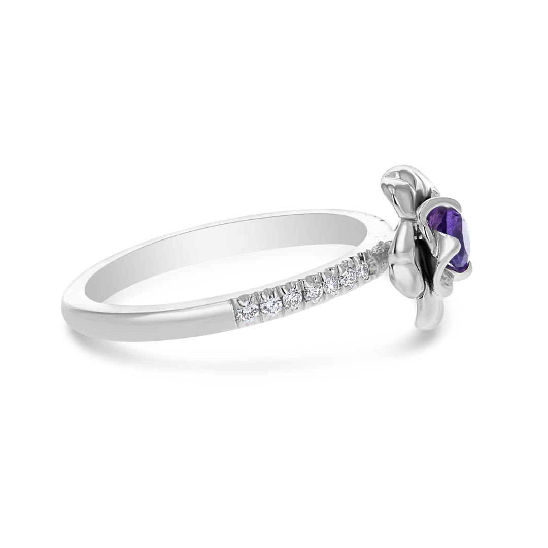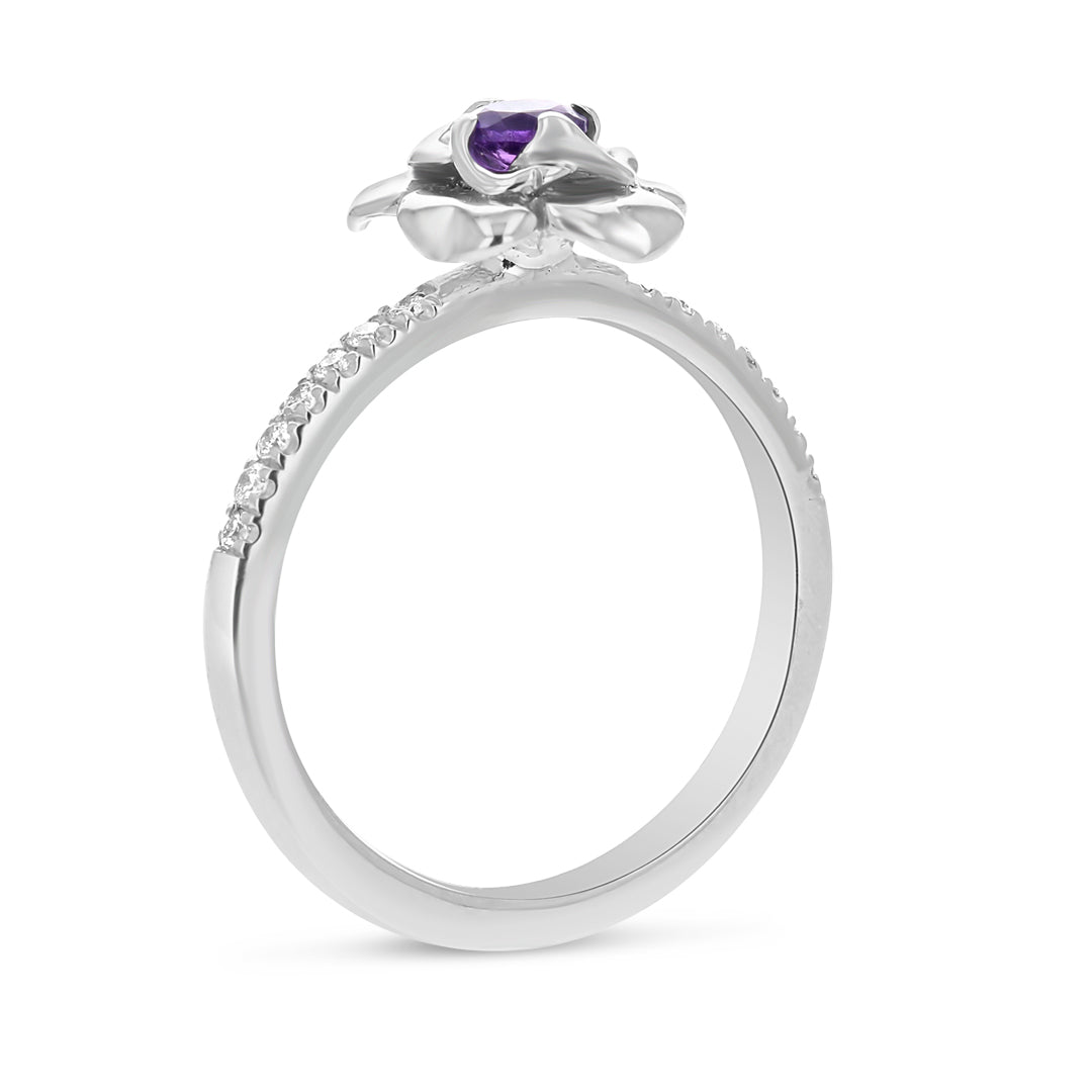 Fancy Ring With Round Amethyst and Diamonds Down The Shank