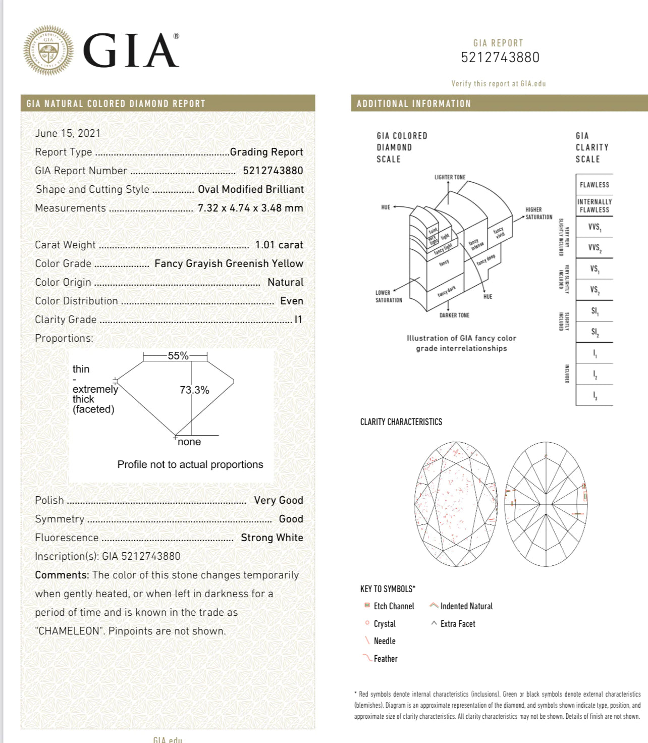 1.01 ct 'Chameleon' Diamond Oval Gia Ring