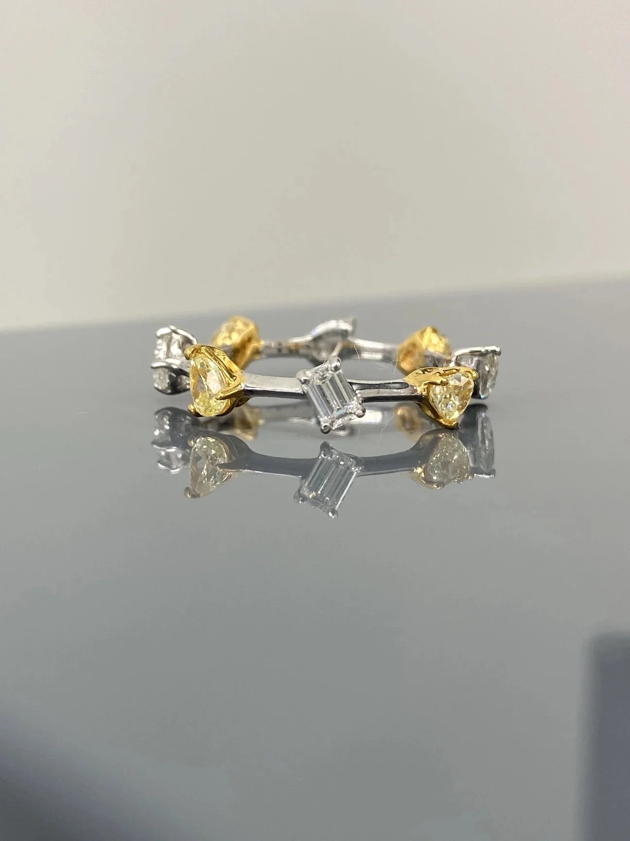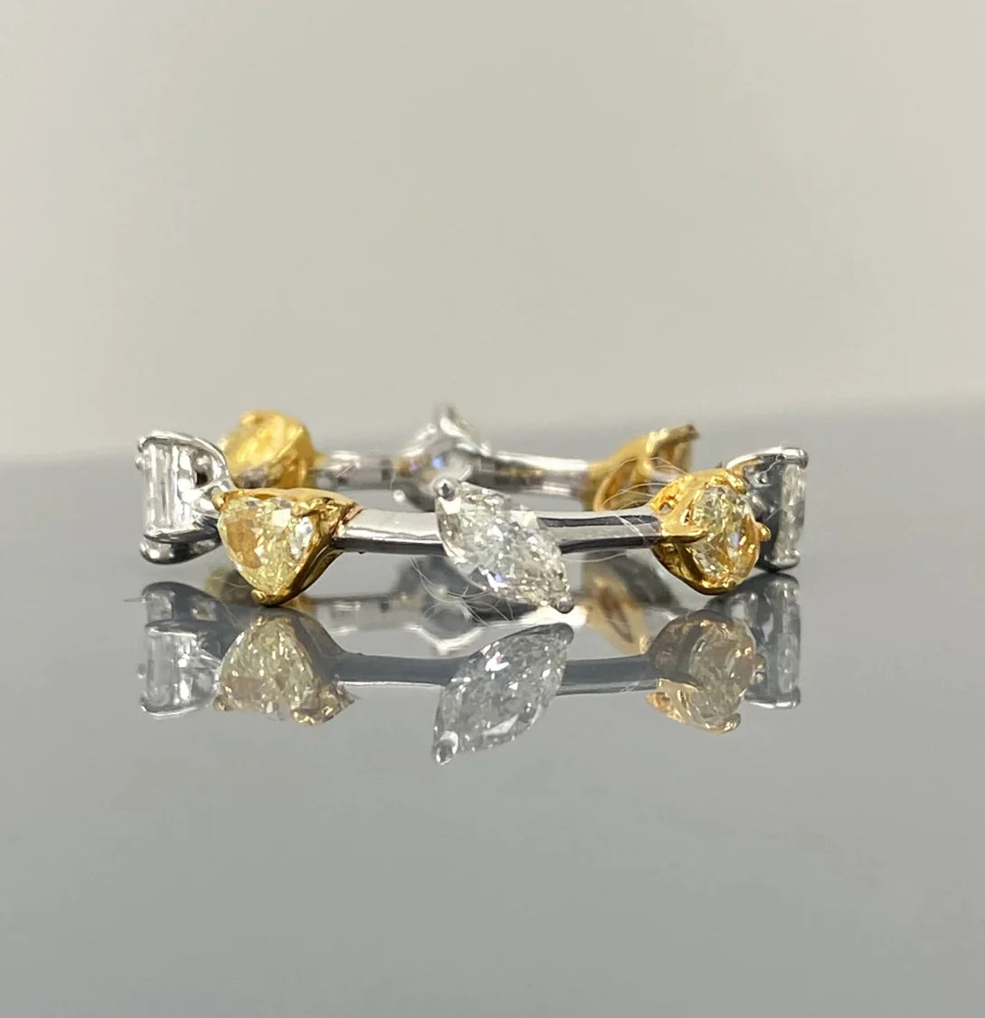 1.21 Carats of Yellow and White Mixed Shape Diamonds VS Clarity Fancy Intense Yellow Diamonds Set in 18k White & Yellow Gold