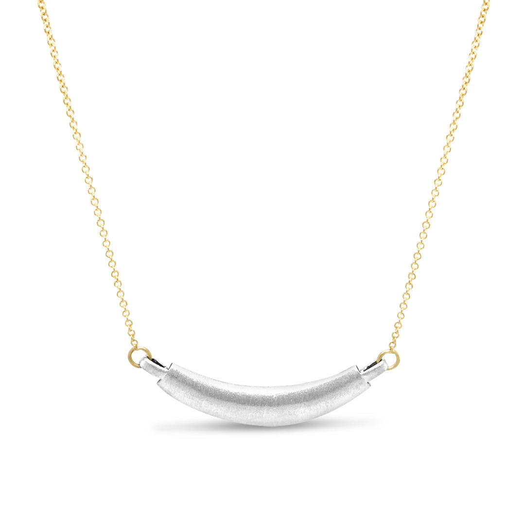 Product Details: 14k Yellow Gold Chain and Satin Finish Sterling Silver Bar