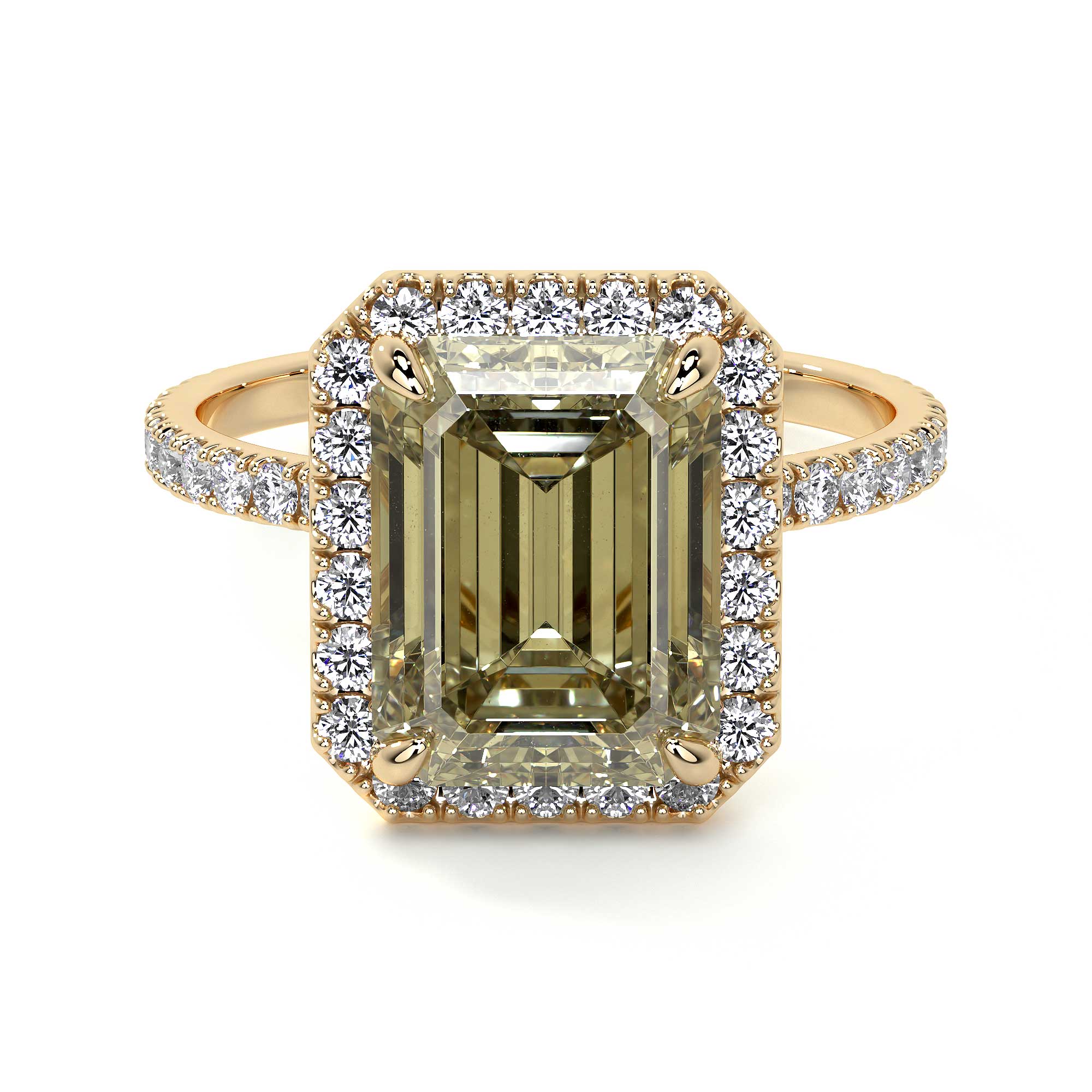 Emerald Cut Diamond Ring With Halo, 2 CT