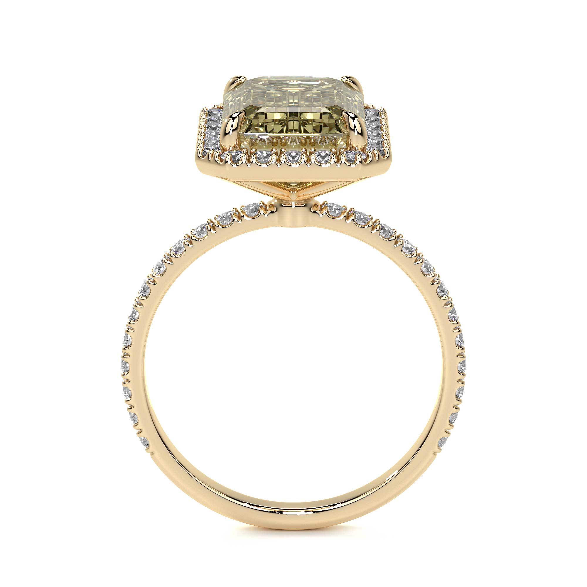 Material: 18K Yellow Gold Stone(s): Diamonds Carat Weight/Size: 2.09 CT Center Stone with 0.55 CT Pave Diamond Quality: N VS2