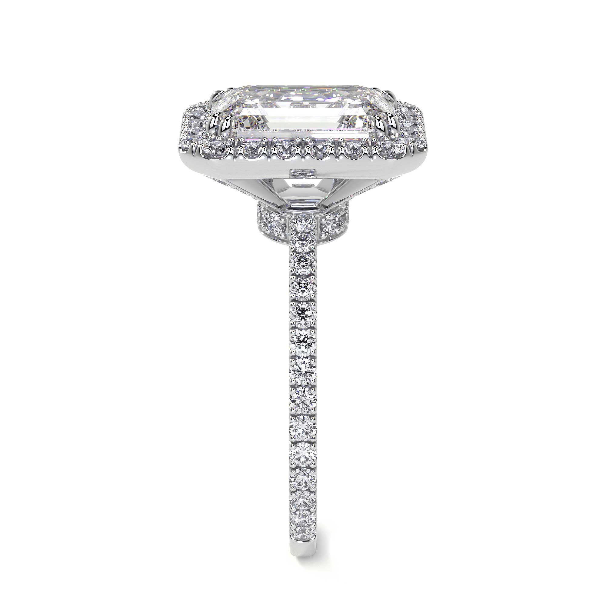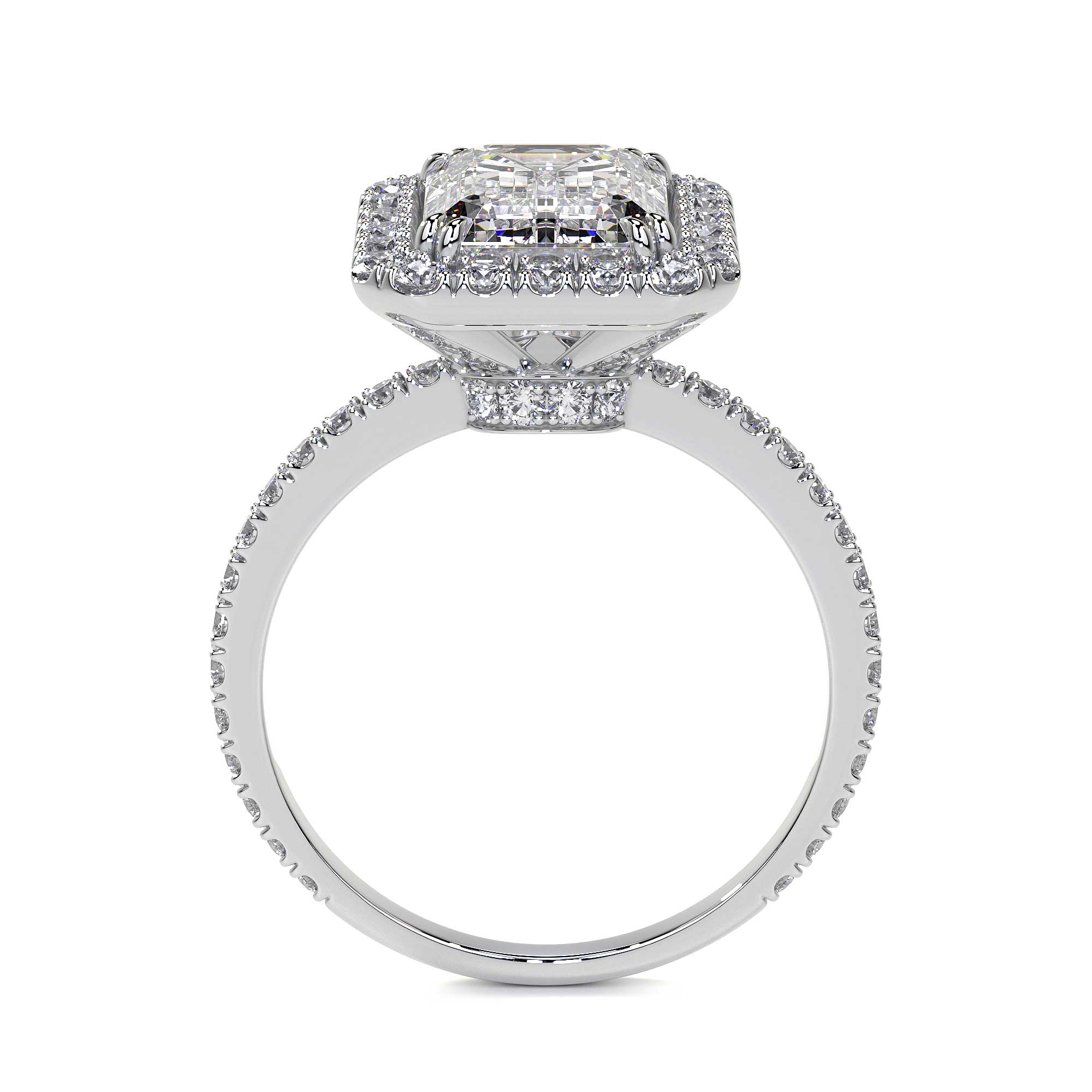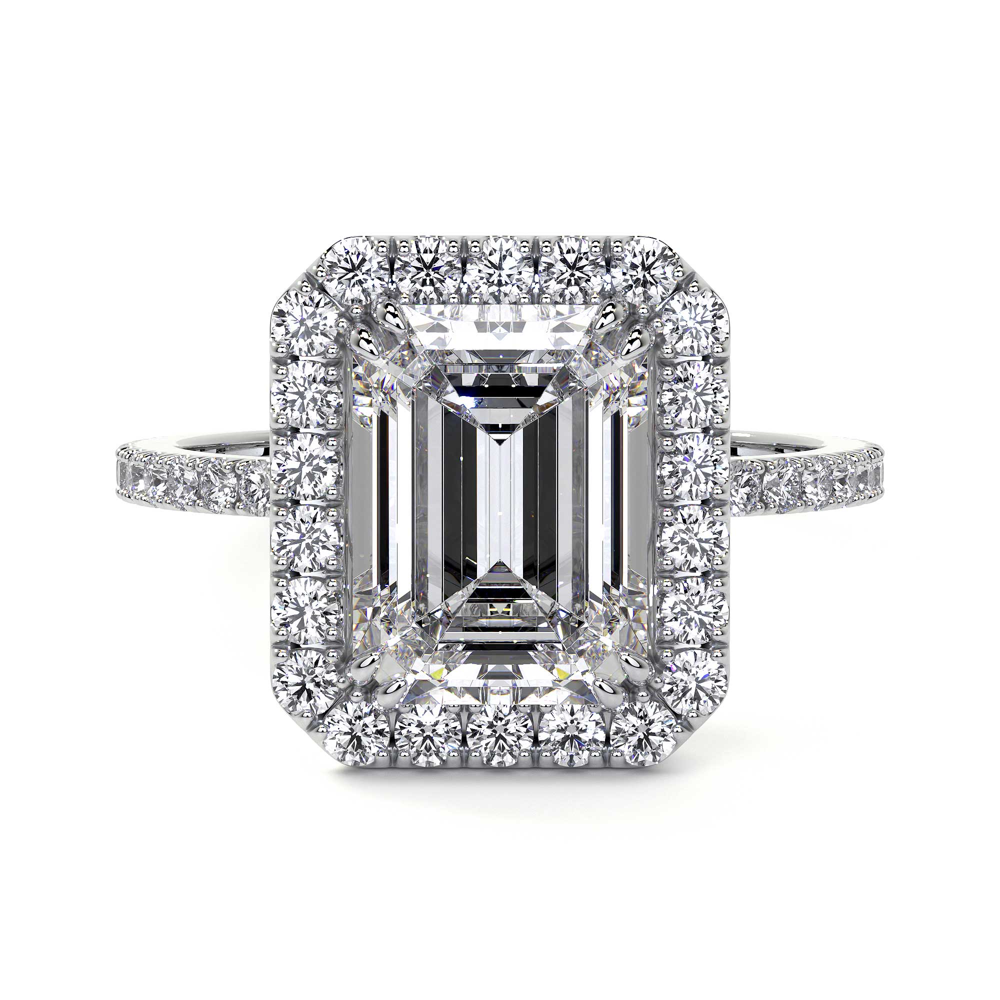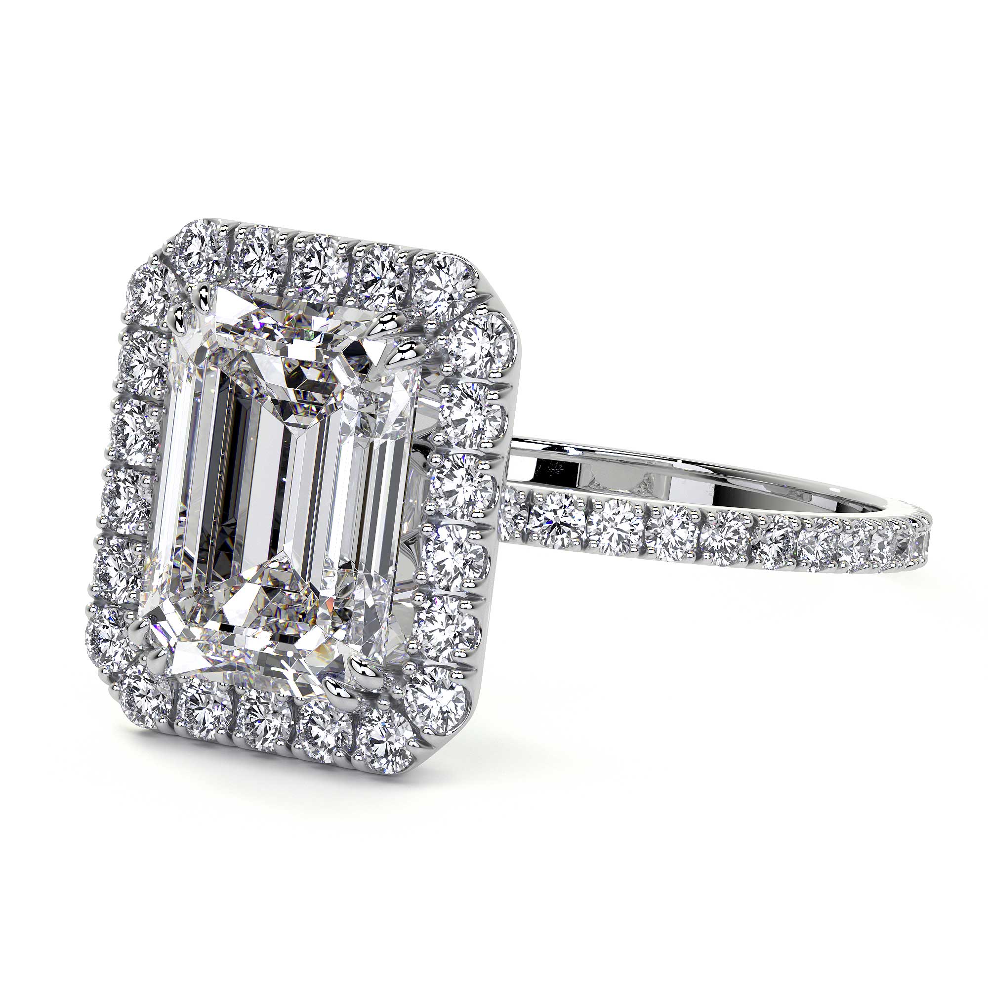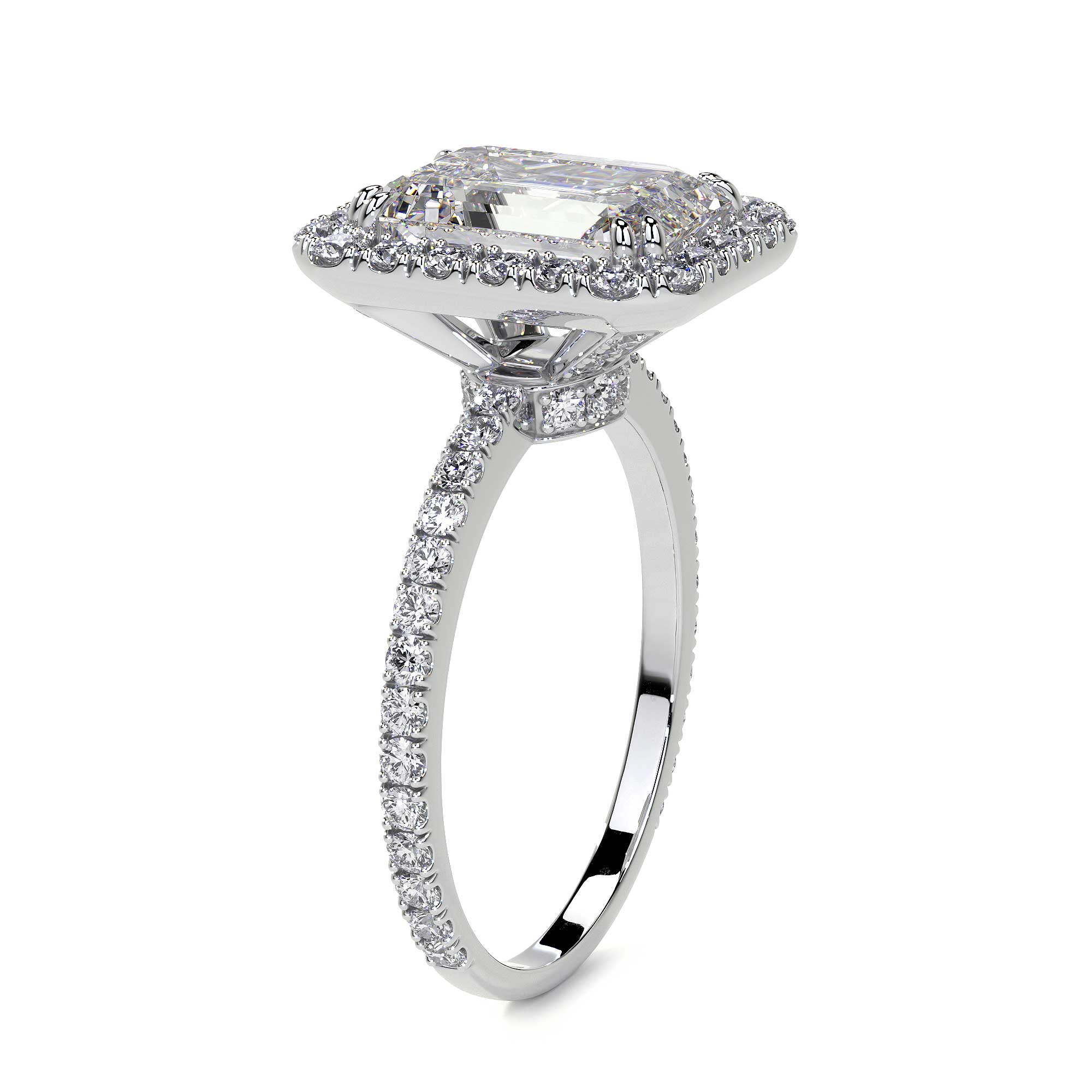 Emerald Cut Diamond Ring With Halo, 2 CT