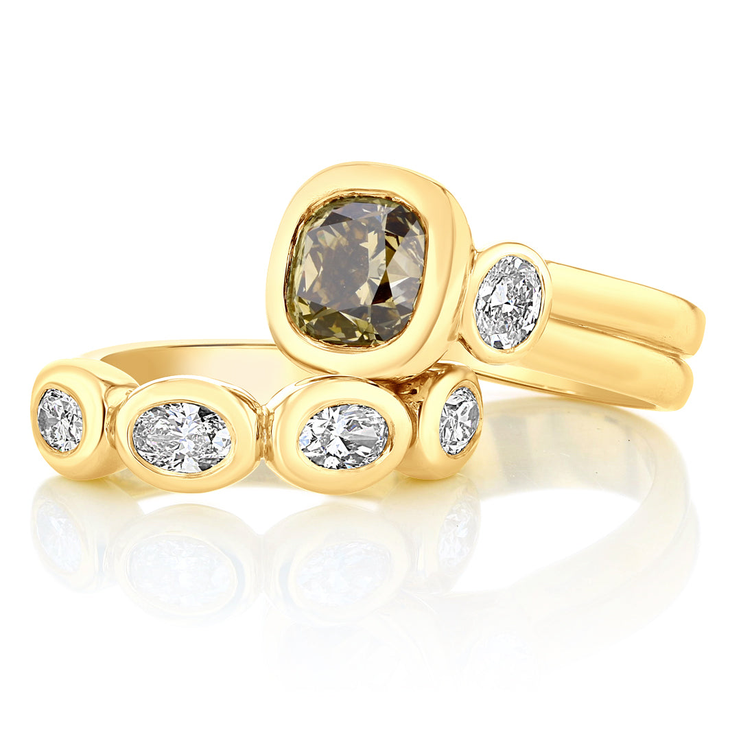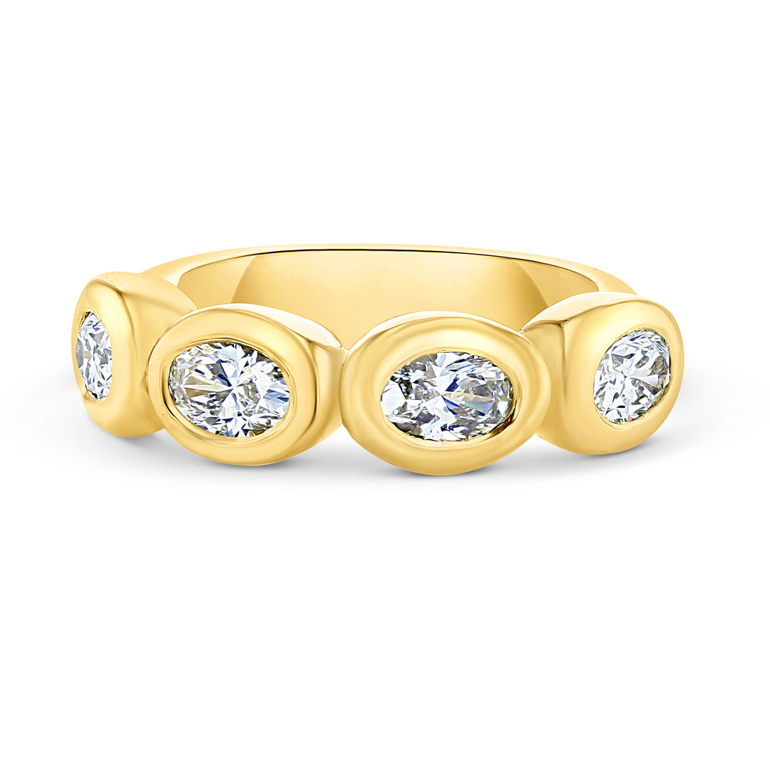 18k Yellow Gold Heavy Band with (4) Bezel set Oval Diamonds