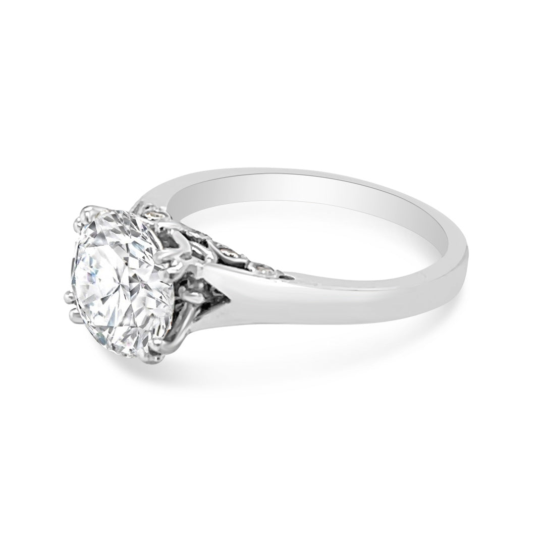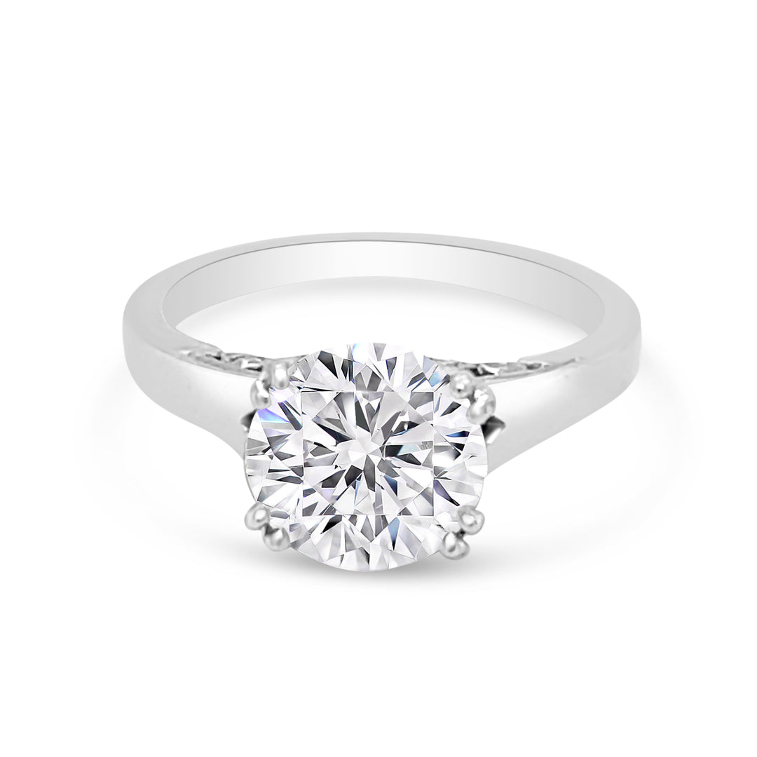 Solitaire Engagement Ring With Round Diamond and Decorated Bridge