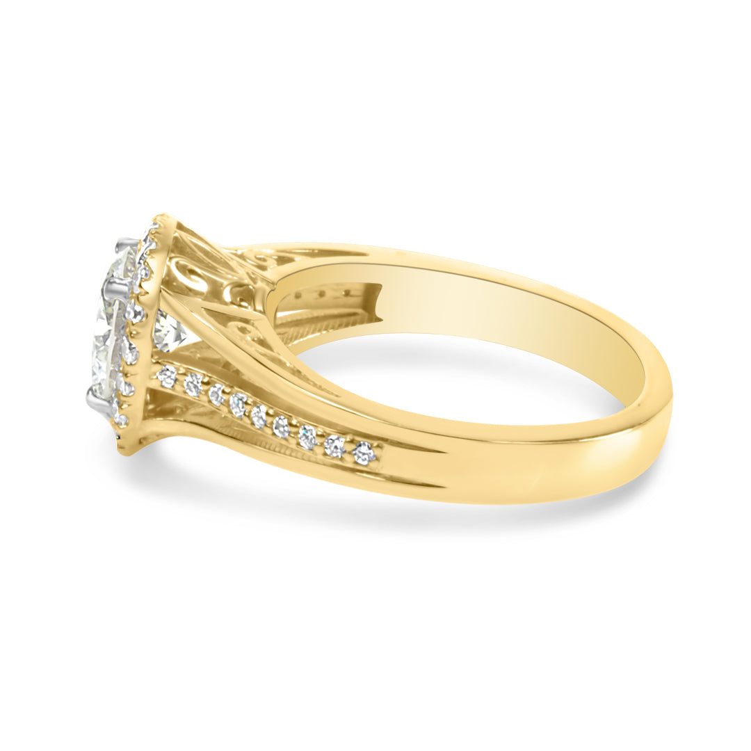 Split Shank Cushion Halo Engagement Ring