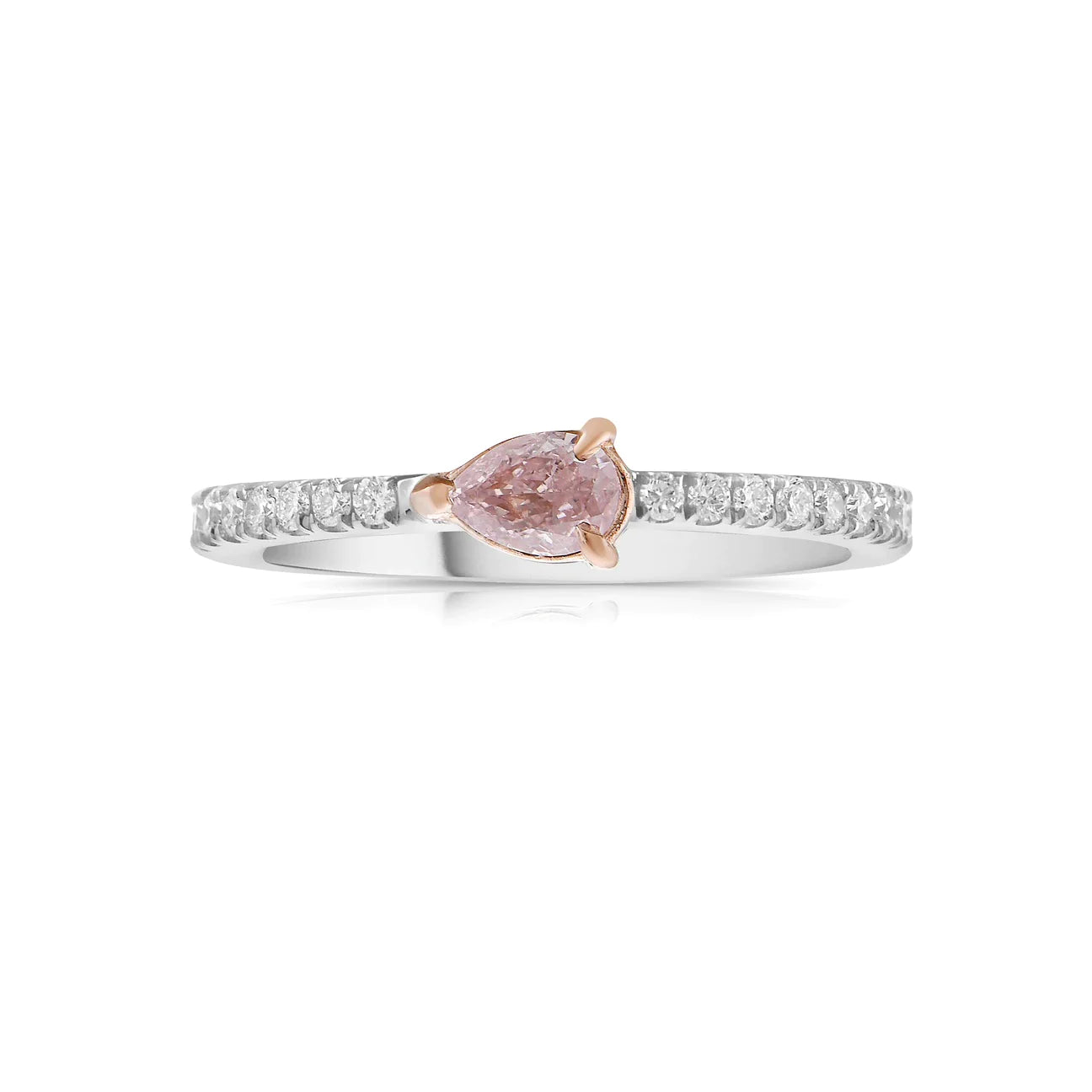 .25 Carat Fancy Pink Pear Shape VS Clarity .15 Carats of White Rounds Handmade in NYC Size 6