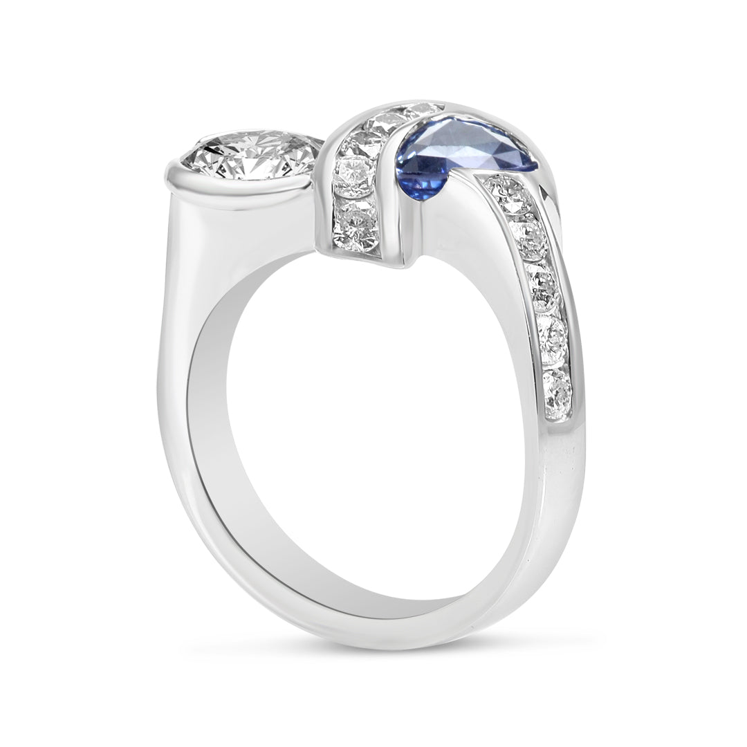 Semi-Bezel Set Trillion Cut Sapphire and Diamond Ring with Channel Set Side Stones