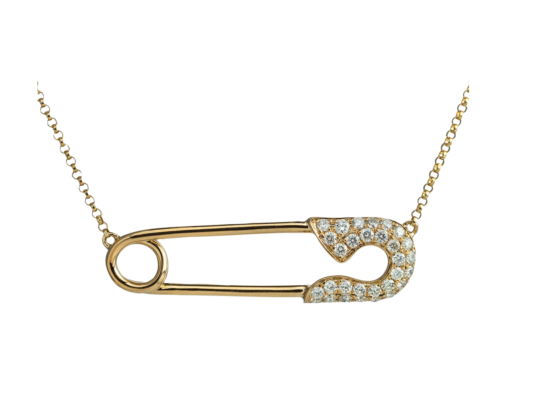 Yellow Gold Diamond Pave Safety Pin Necklace
